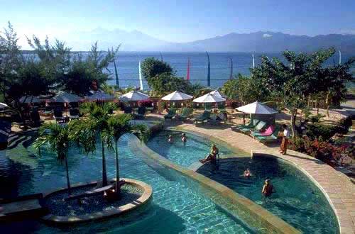 The bungalows are built in the traditional Lombok style, entirely made out of coconut trunk and bamboo, and combined with teakwood (air condition, fridge room service..). Bathrooms are partly open roof. The service is delicate, the swimming pool and the outlook to the ocean is splendid. The perfect stay for those wanting to scuba dive around the Gili’s without compromising with comfort.