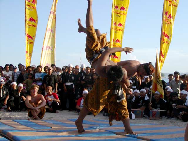 Mepantigan is traditional brand new Balinese martial arts that involve the techniques of throwing and locking.The performance is accompanied with traditional Balinese orchestra "gamelan" such as gagambuhan. The fighters wear a uniform consisting of bebuletan (sarong), kancut, guladginting, and udeng (head-dress).